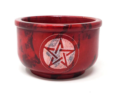 Red Soapstone burner/smudge pot w/ pentacle